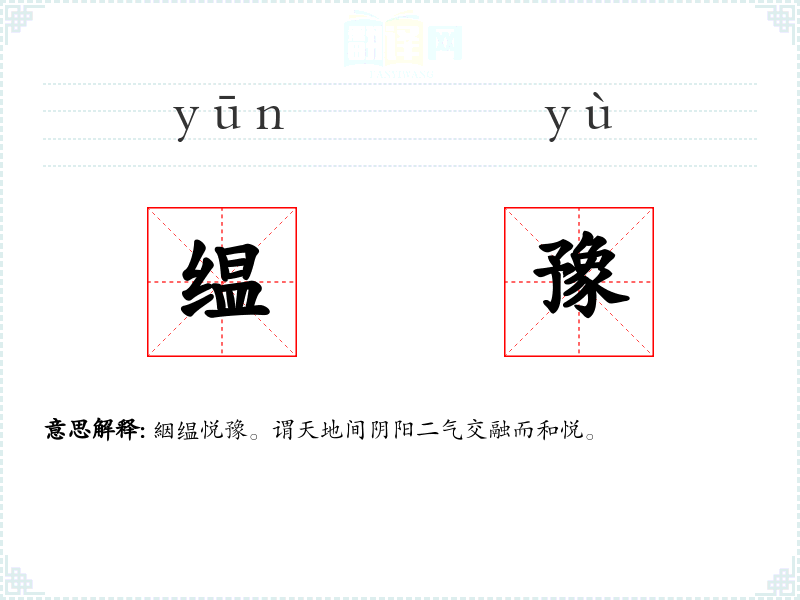 絪缊悦豫。谓天地间阴阳二气交融而和悦。