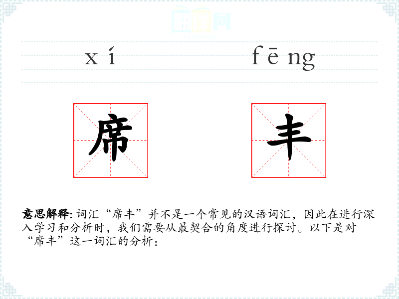 词汇“席丰”并不是一个常见的汉语词汇,因此在进行深入学习和分析时,我们需要从最契合的角度进行探讨。以下是对“席丰”这一词汇的分析: