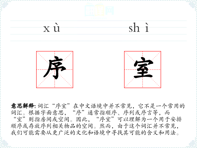 由于“序室”不是一个常用词汇,它在不同语言或文化中的对应词汇及其使用情况不详。