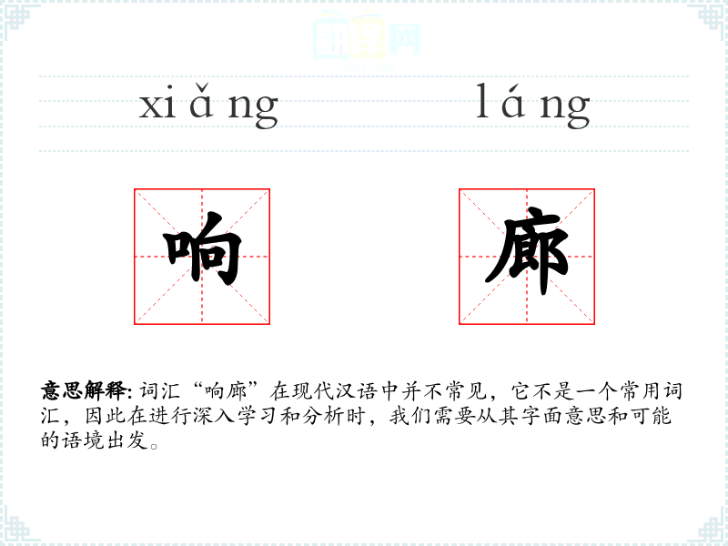 词汇“响廊”在现代汉语中并不常见,它不是一个常用词汇,因此在进行深入学*和分析时,我们需要从其字面意思和可能的语境出发。