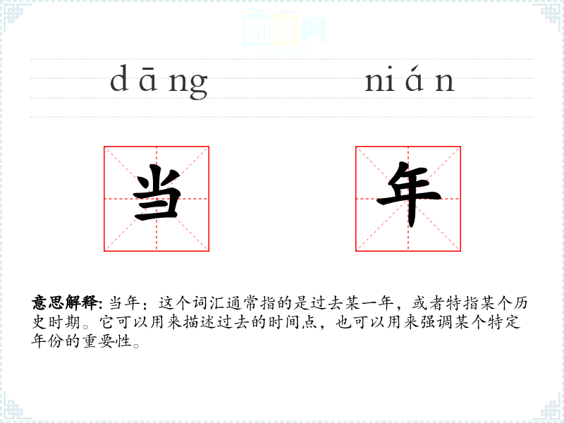 当年:这个词汇通常指的是过去某一年,或者特指某个历史时期。它可以用来描述过去的时间点,也可以用来强调某个特定年份的重要性。