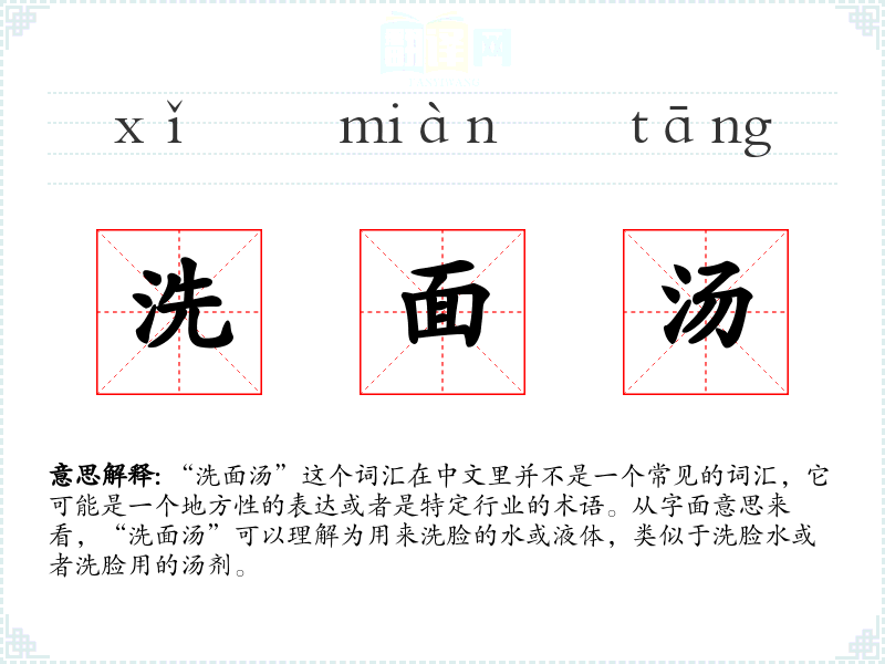 "洗面汤"的意思解释、洗面汤是什么意思由翻译网汉语词典查词提供。