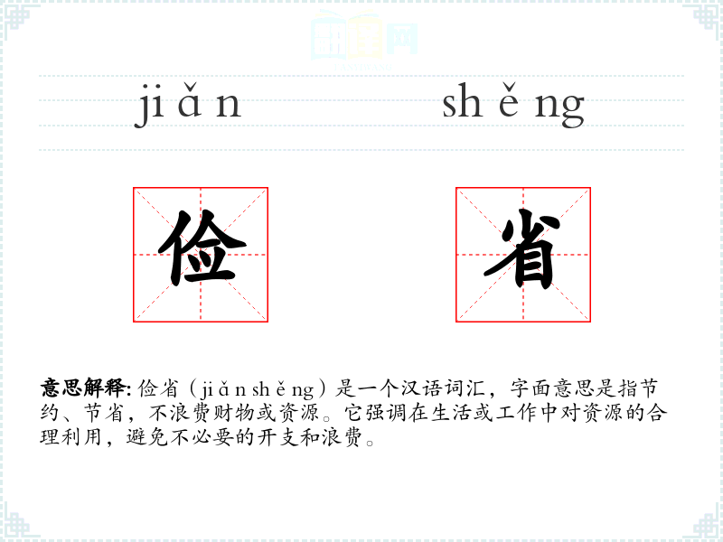 - 专业领域:在经济学或管理学中,俭省可能涉及到成本控制和资源优化,如“公司通过俭省措施降低了运营成本”。
