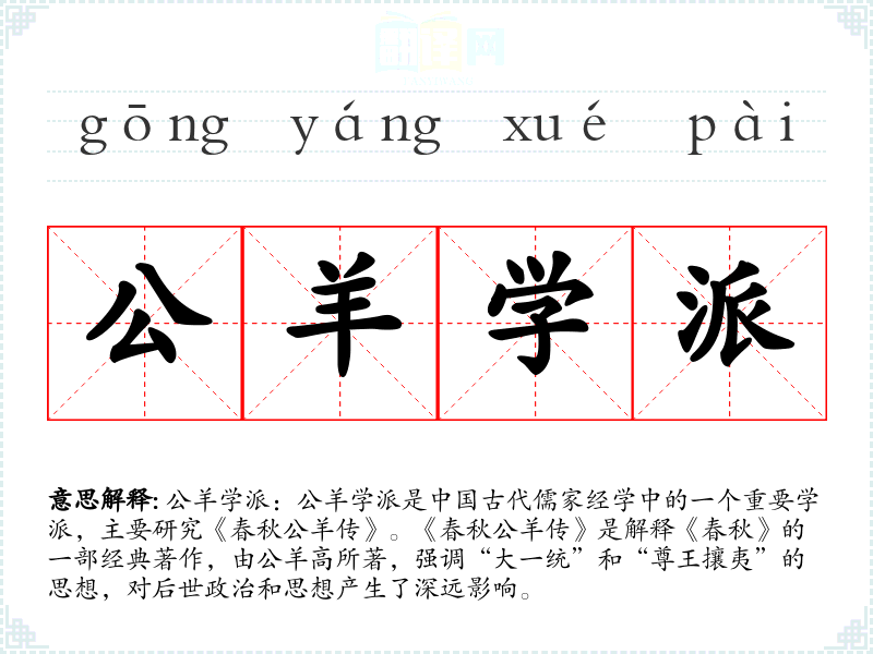 理解:公羊学派是古代儒家经学中的一个重要学派,其“大一统”和“尊王攘夷”的思想对后世产生了深远影响。 重要性*:在语言学和表达中,了解公羊学派有助于我们更深入地理解**古代的政治和思想文化,丰富我们的知识储备和思考角度。