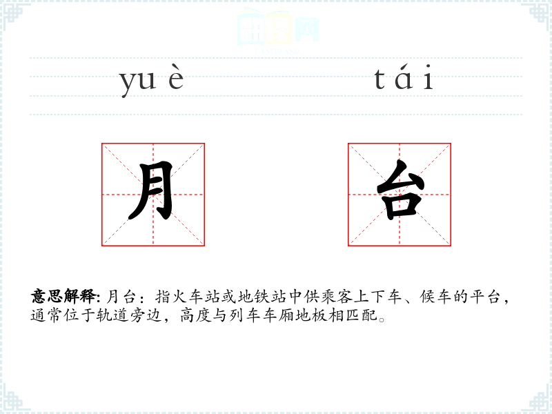 "月台"的意思解释、月台是什么意思由翻译网汉语词典查词提供。