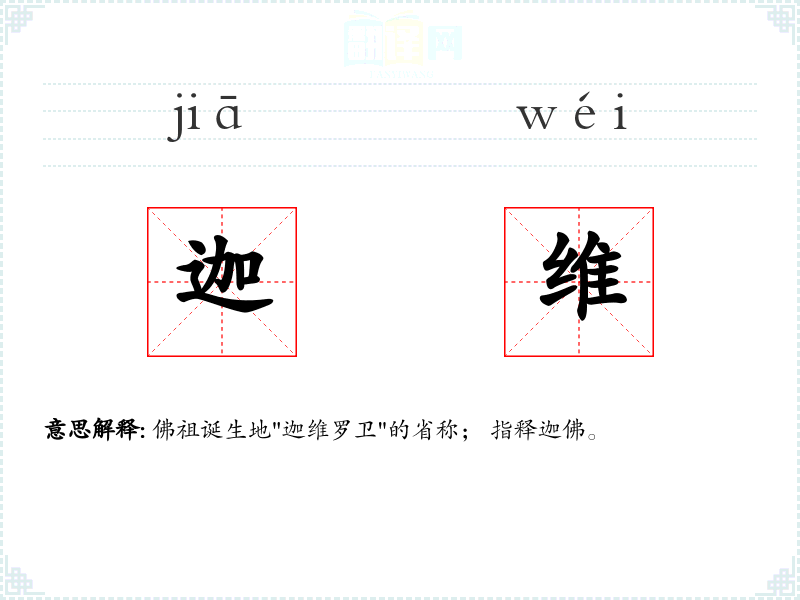 佛祖诞生地"迦维罗卫"的省称; 指释迦佛。