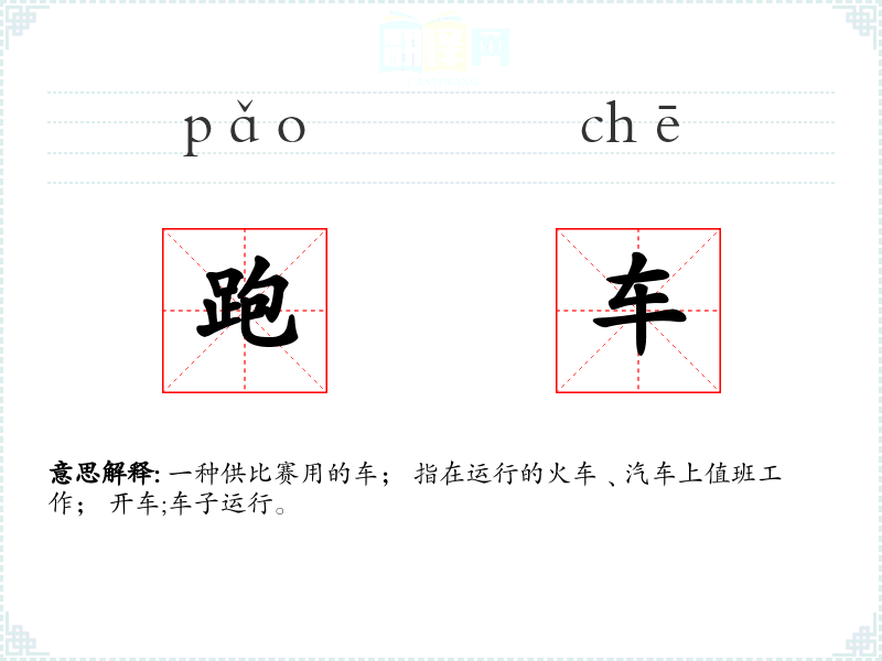 跑车的分字解释