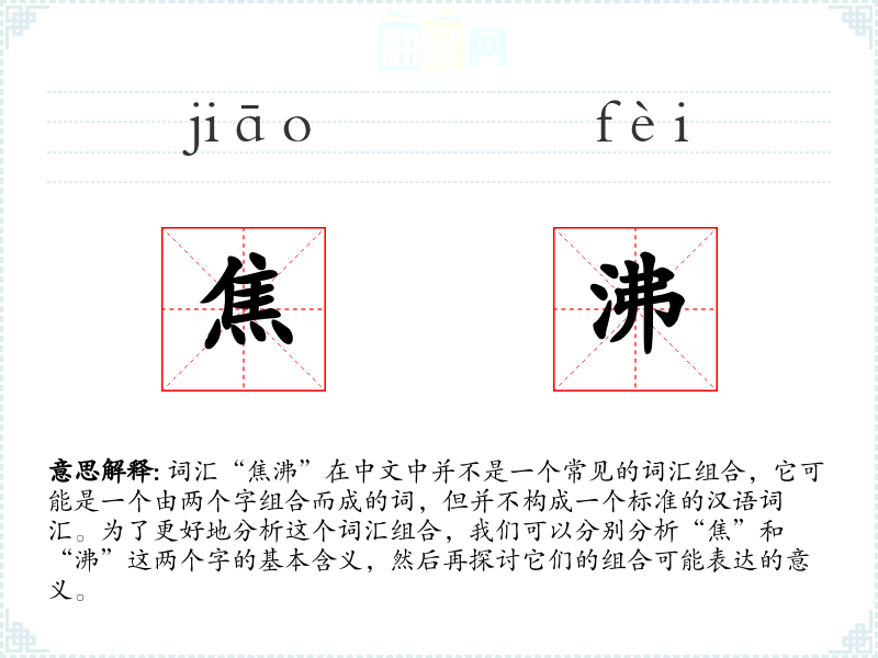 词汇“焦沸”在中文中并不是一个常见的词汇组合,它可能是一个由两个字组合而成的词,但并不构成一个标准的汉语词汇。为了更好地分析这个词汇组合,我们可以分别分析“焦”和“沸”这两个字的基本含义,然后再探讨它们的组合可能表达的意义。