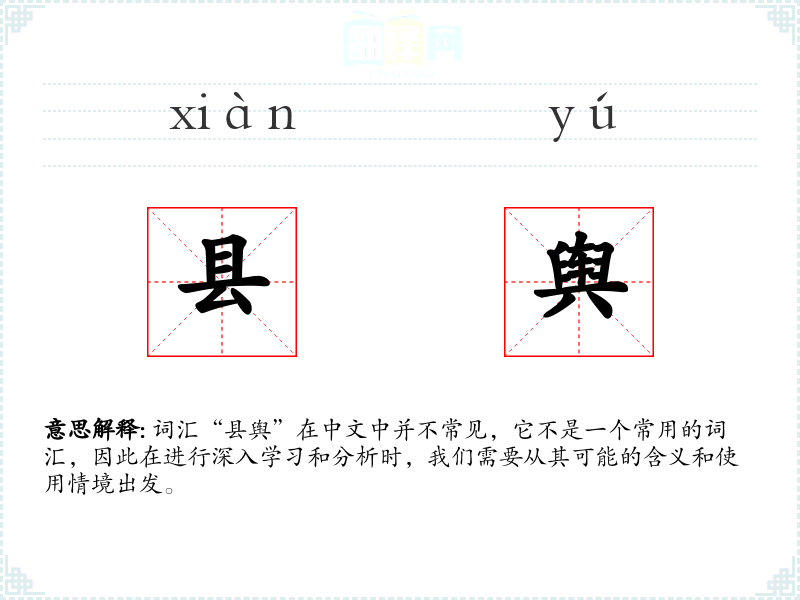 词汇“县舆”在中文中并不常见,它不是一个常用的词汇,因此在进行深入学*和分析时,我们需要从其可能的含义和使用情境出发。