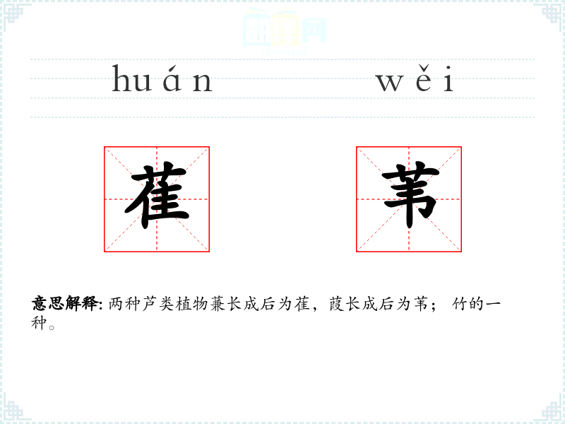 两种芦类植物蒹长成后为萑,葭长成后为苇; 竹的一种。