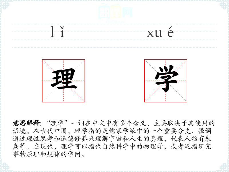 "理学"的意思解释、理学是什么意思由翻译网汉语词典查词提供。