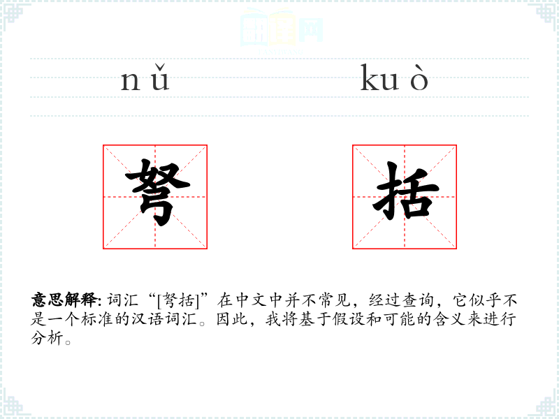 词汇“[弩括]”在中文中并不常见,经过查询,它似乎不是一个标准的汉语词汇。因此,我将基于假设和可能的含义来进行分析。