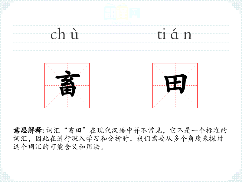 词汇“畜田”在现代汉语中并不常见,它不是一个标准的词汇,因此在进行深入学习和分析时,我们需要从多个角度来探讨这个词汇的可能含义和用法。