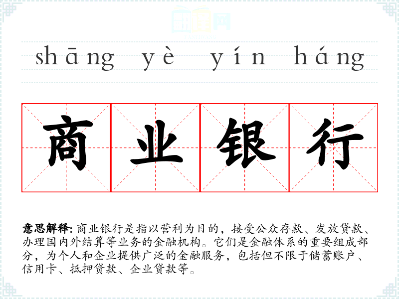 通过对“商业银行”的深入学,我更加理解了它在现代经济中的重要性。这个词不仅代表了金融服务的提供者,也反映了社会对金融稳定和信任的期望。在未来的语言学和表达中,我将更加注意这个词在不同语境下的应用,以及它所承载的文化和情感意义。