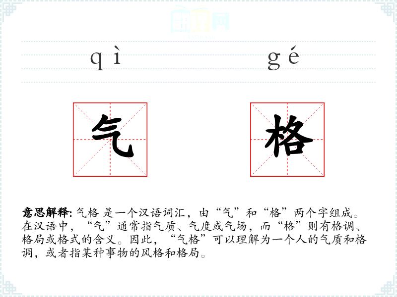 气格 是一个汉语词汇,由“气”和“格”两个字组成。在汉语中,“气”通常指气质、气度或气场,而“格”则有格调、格局或格式的含义。因此,“气格”可以理解为一个人的气质和格调,或者指某种事物的风格和格局。