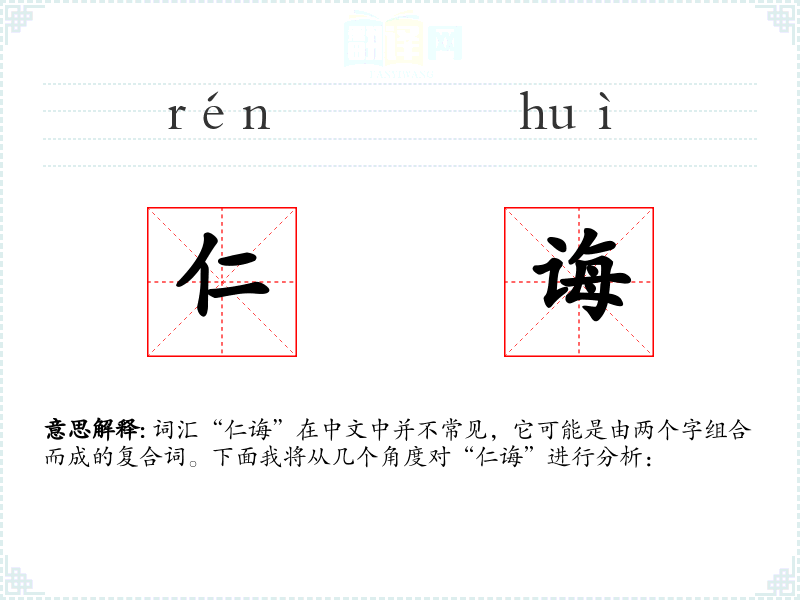 词汇“仁诲”在中文中并不常见,它可能是由两个字组合而成的复合词。下面我将从几个角度对“仁诲”进行分析: