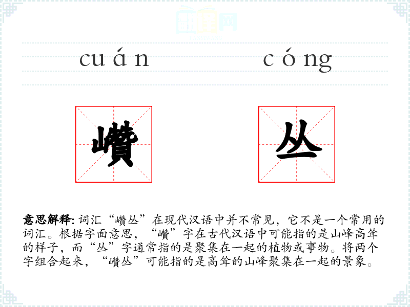 - 理解:“巑丛”是一个描述自然景观的词汇,虽然在现代汉语中不常用,但在古代文学中可能有着重要的地位。