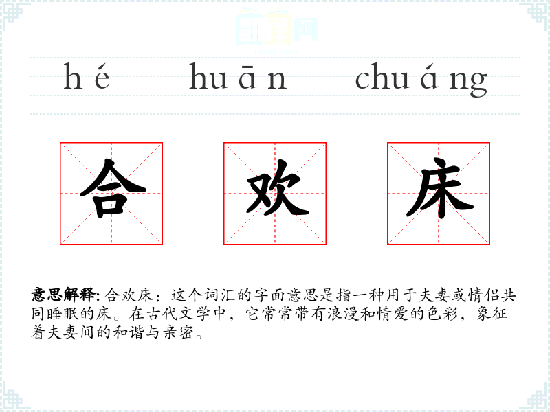 "合欢床"的意思解释、合欢床是什么意思由翻译网汉语词典查词提供。