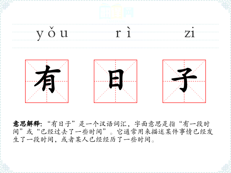 “有日子”这个词汇的词源较为简单,由“有”和“日子”两个词组成。在汉语中,“有”表示存在或拥有,“日子”表示时间。随着时间的推移,这个词汇的用法和含义逐渐固定下来,成为描述时间流逝的常用表达。