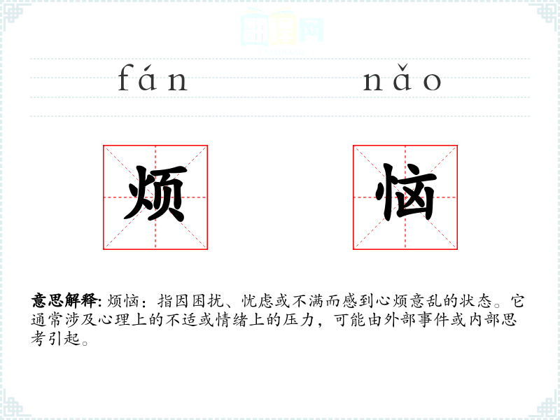 "烦恼"的意思解释、烦恼是什么意思由翻译网汉语词典查词提供。