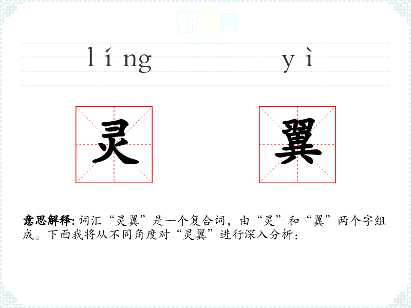 - 词源:“灵”源自古代汉语,意指精神、灵魂;“翼”同样源自古代汉语,最初指鸟类的翅膀。