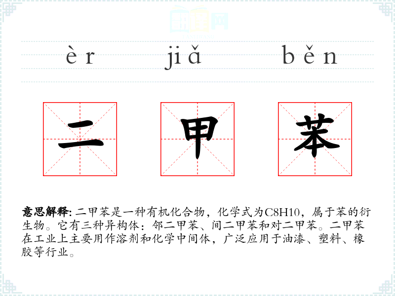 "二甲苯"的意思解释、二甲苯是什么意思由翻译网汉语词典查词提供。