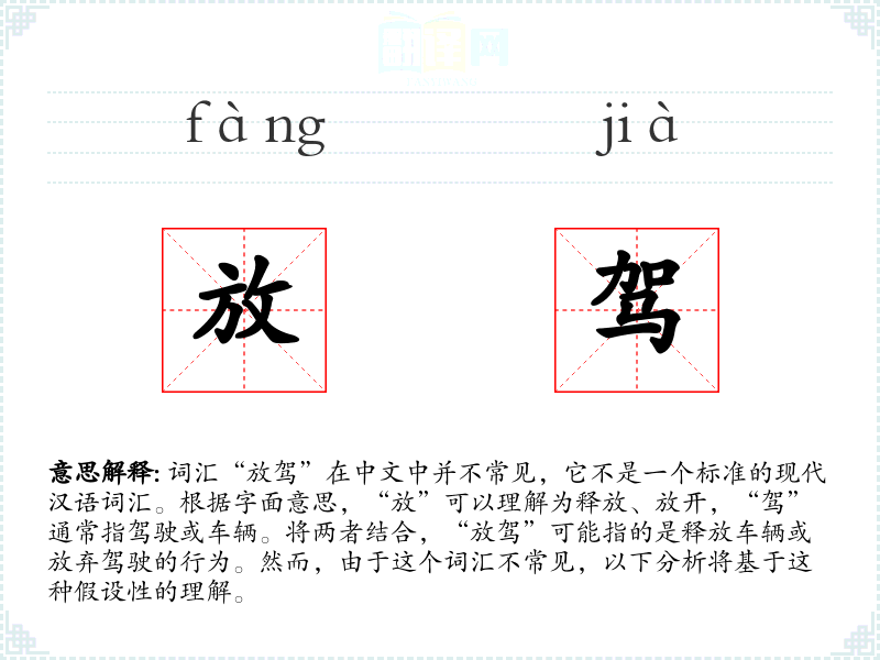 在现代社会中,“放驾”这个词汇并不具有特定的文化或社会背景意义,因为它不是一个常用词汇。