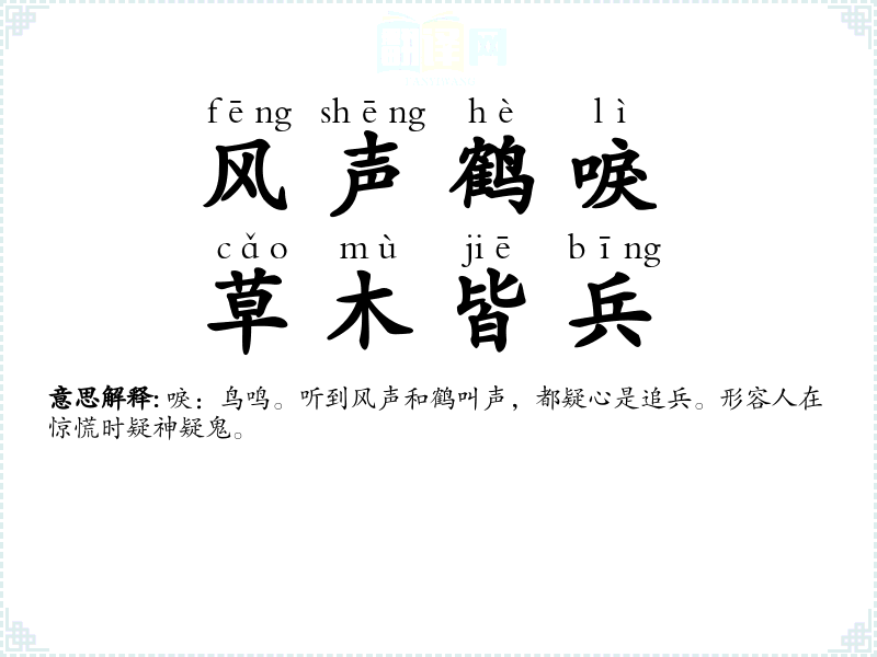 风声鹤唳,草木皆兵的分字解释