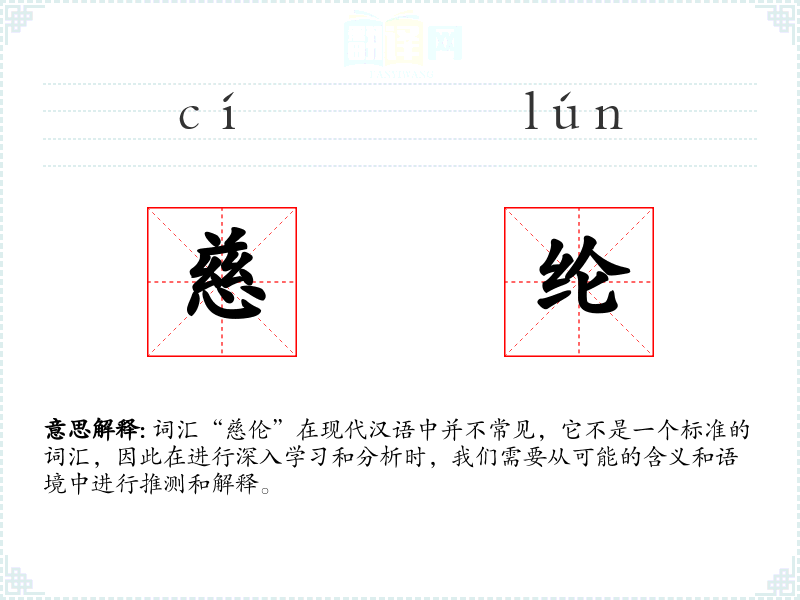 词汇“慈伦”在现代汉语中并不常见,它不是一个标准的词汇,因此在进行深入学习和分析时,我们需要从可能的含义和语境中进行推测和解释。