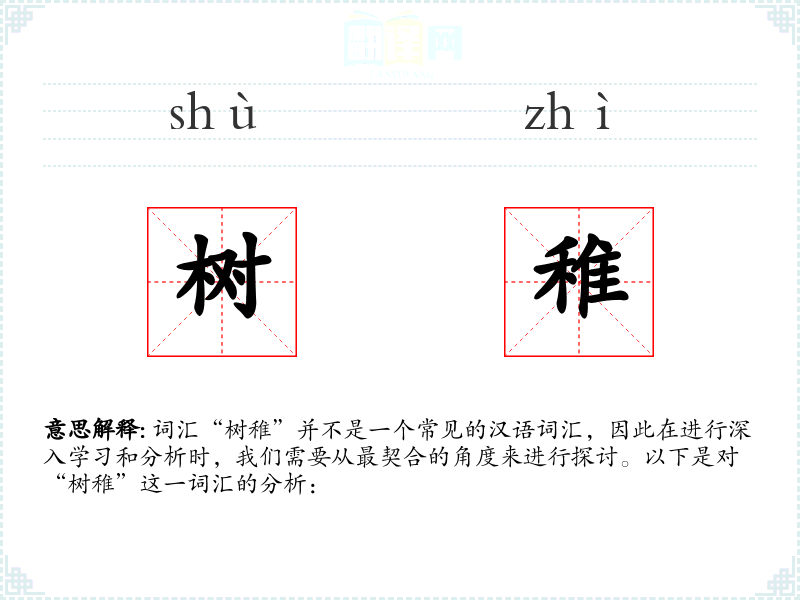 由于“树稚”不是一个标准词汇,我们可以尝试从字面意思来解释: