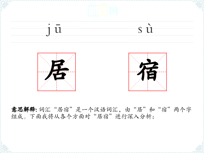 词汇“居宿”是一个汉语词汇,由“居”和“宿”两个字组成。下面我将从各个方面对“居宿”进行深入分析: