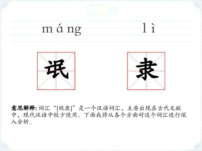 词汇“[氓隶]”是一个汉语词汇,主要出现在古代文献中,现代汉语中较少使用。下面我将从各个方面对这个词汇进行深入分析。
