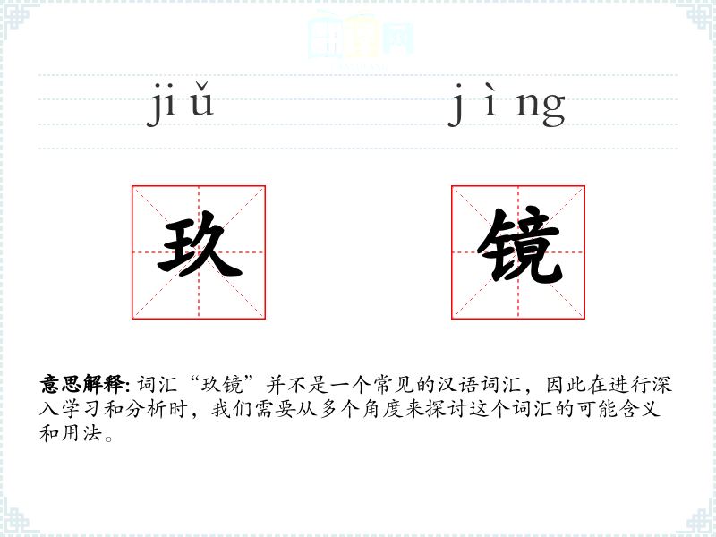 词汇“玖镜”并不是一个常见的汉语词汇,因此在进行深入学习和分析时,我们需要从多个角度来探讨这个词汇的可能含义和用法。