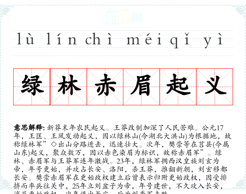"绿林赤眉起义"的意思解释、绿林赤眉起义是什么意思由翻译网汉语词典查词提供。