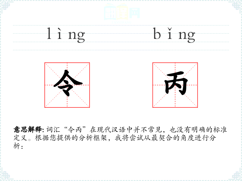 词汇“令丙”在现代汉语中并不常见,也没有明确的标准定义。根据您提供的分析框架,我将尝试从最契合的角度进行分析: