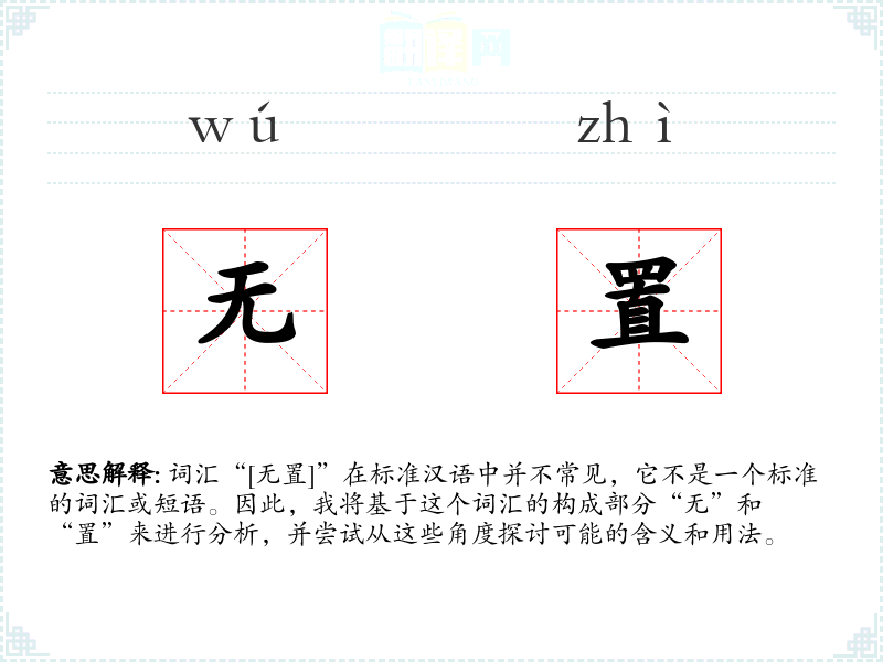 结合这两个字,“无置”可能意味着“没有放置”或“未设置”。