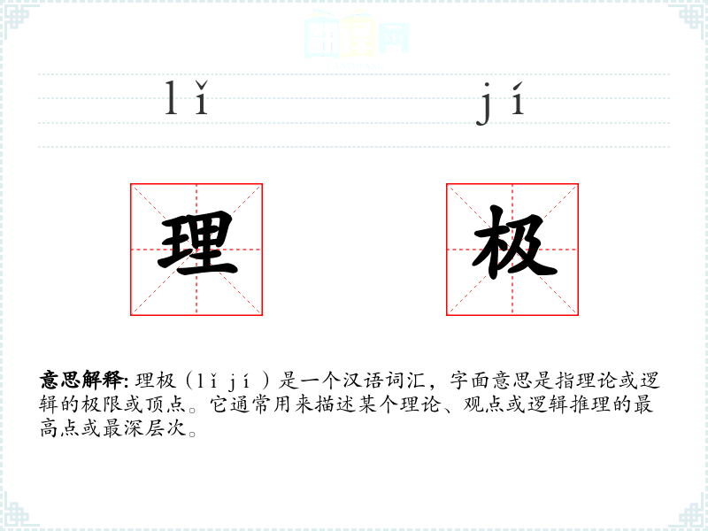 - 在逻辑推理中,理极是指推理链条的最终结论,不可再推导。