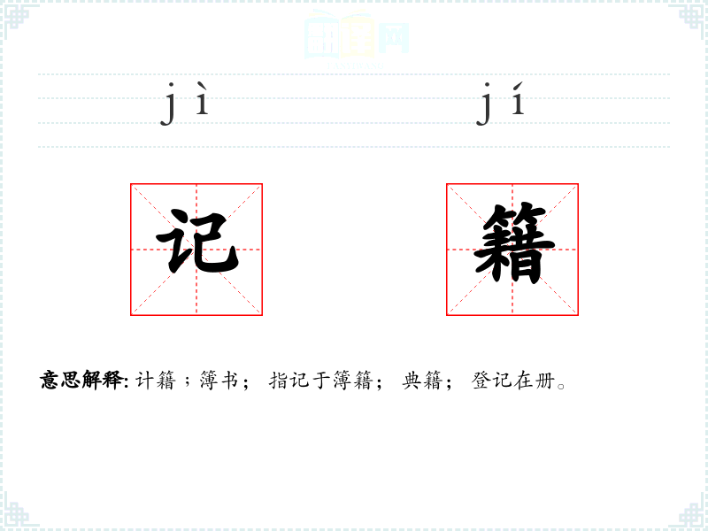 记籍的分字解释
