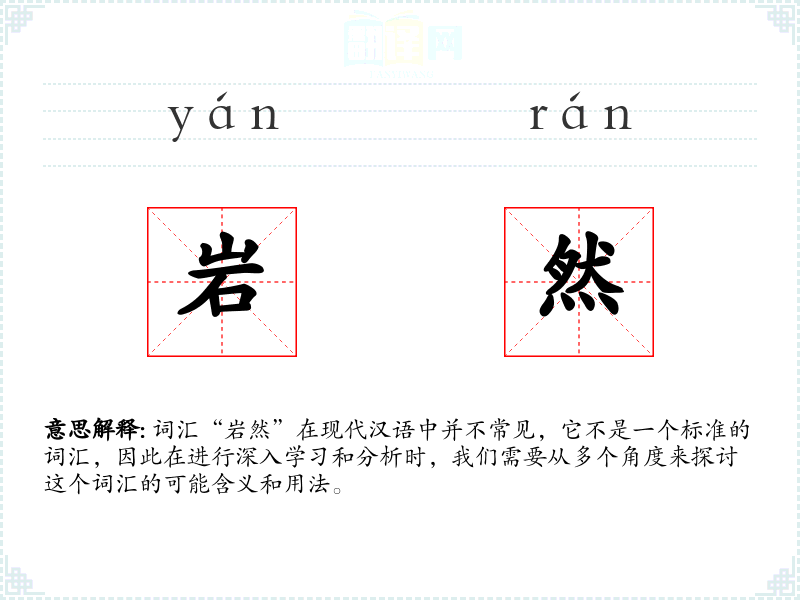 词汇“岩然”在现代汉语中并不常见,它不是一个标准的词汇,因此在进行深入学习和分析时,我们需要从多个角度来探讨这个词汇的可能含义和用法。
