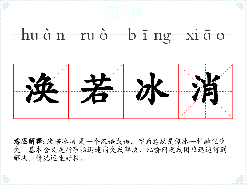 "涣若冰消"的意思解释、涣若冰消是什么意思由翻译网汉语词典查词提供。