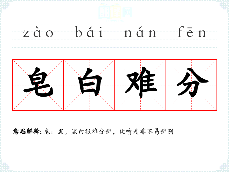 皂:黑。黑白很难分辨,比喻是非不易辨别