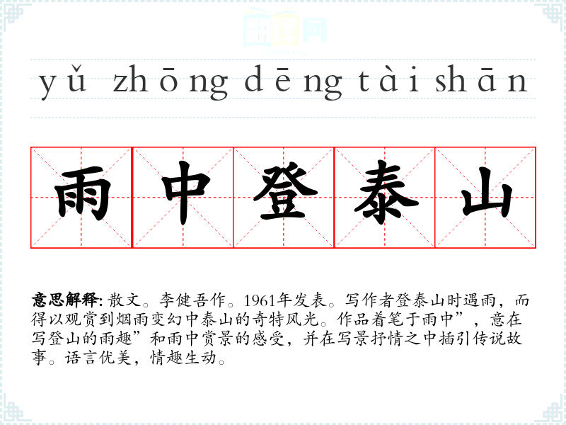 "雨中登泰山"的意思解释、雨中登泰山是什么意思由翻译网汉语词典查词提供。