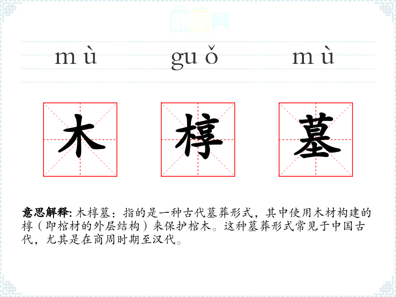 同义词:木棺墓、木椁葬 反义词:石棺墓、土坑墓