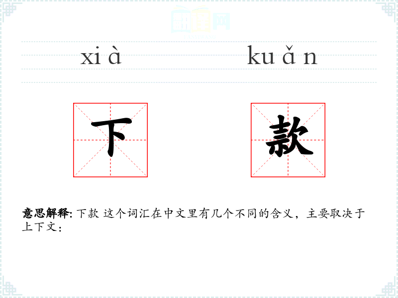 下款 这个词汇在中文里有几个不同的含义,主要取决于上下文: