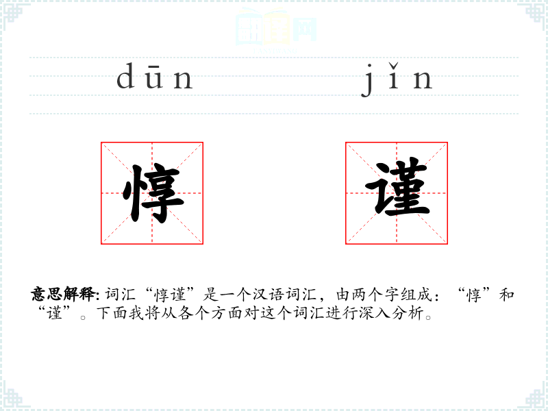 - 词源:“惇”和“谨”都是古代汉语词汇,历史悠久。