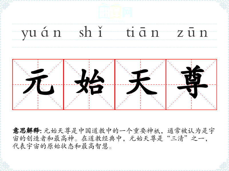 - 反义词:无(在道教体系中,元始天尊作为最高神,没有直接的反义词)