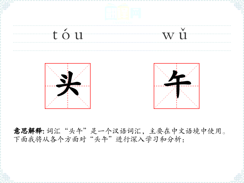“头午”这个词源于汉语,其构成是由“头”(指开始)和“午”(指中午)组合而成,表示接近中午的时间。在古代汉语中,时间段的划分更为细致,因此“头午”这样的词汇得以形成。