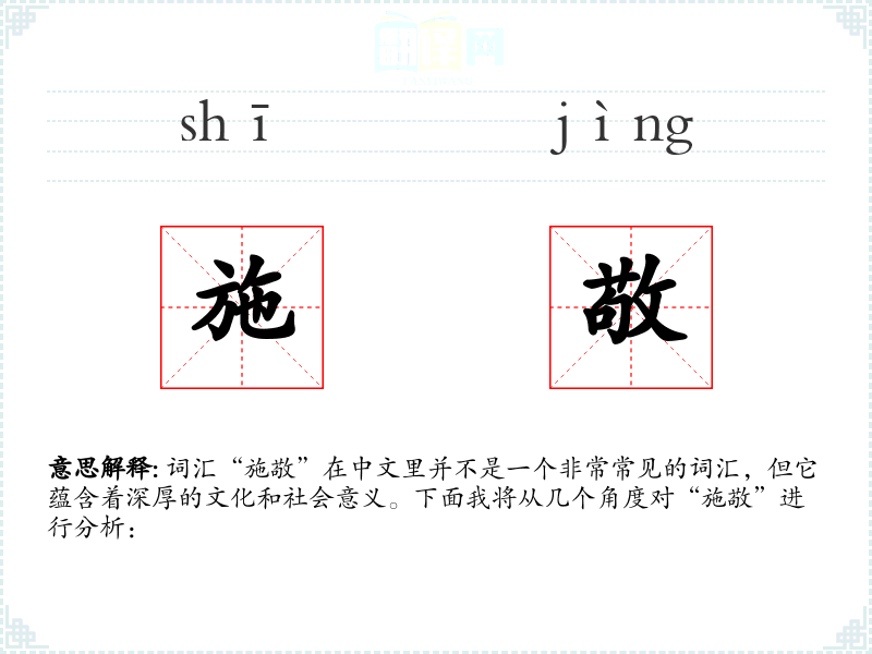 词汇“施敬”在中文里并不是一个非常常见的词汇,但它蕴含着深厚的文化和社会意义。下面我将从几个角度对“施敬”进行分析: