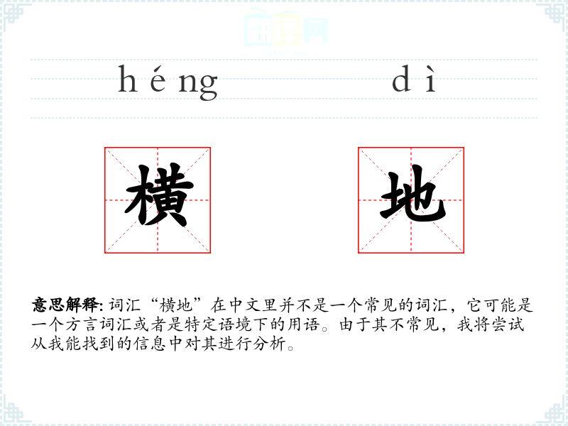 词汇“横地”在中文里并不是一个常见的词汇,它可能是一个方言词汇或者是特定语境下的用语。由于其不常见,我将尝试从我能找到的信息中对其进行分析。