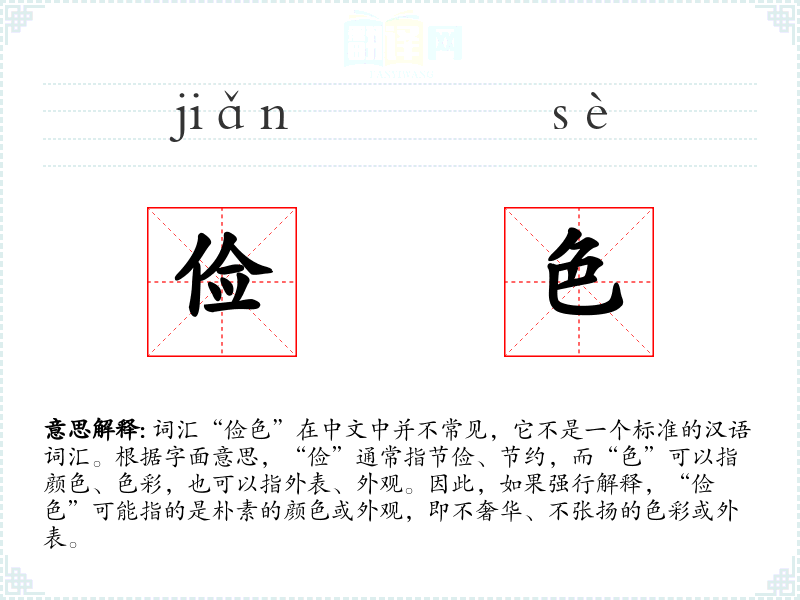 "俭色"的意思解释、俭色是什么意思由翻译网汉语词典查词提供。